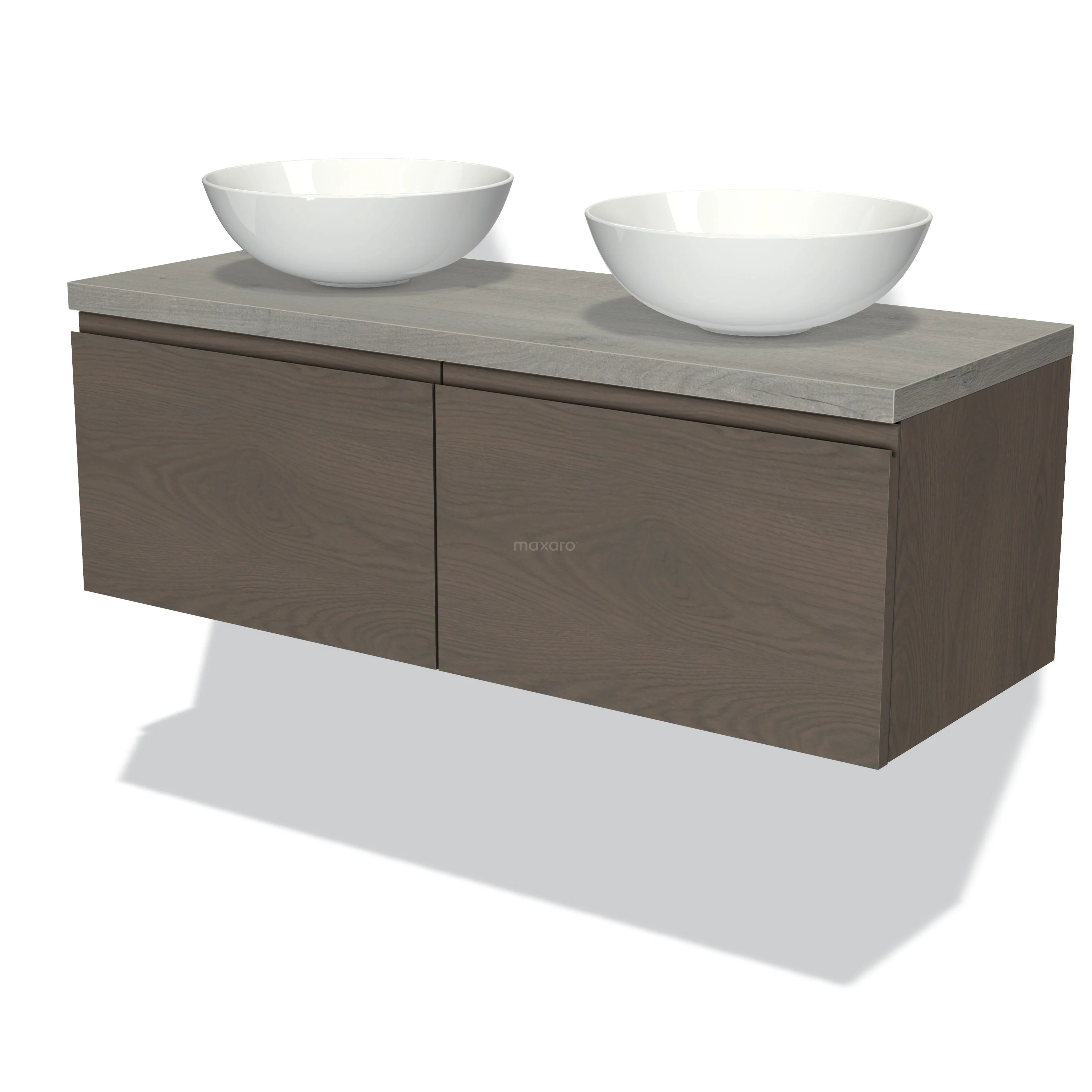 Badmöbel für Waschtischunterschrank mit Konsole 120cm Modulo Plato dunkelbraune Eiche 2 Schubladen grifflose graue Eiche Platte