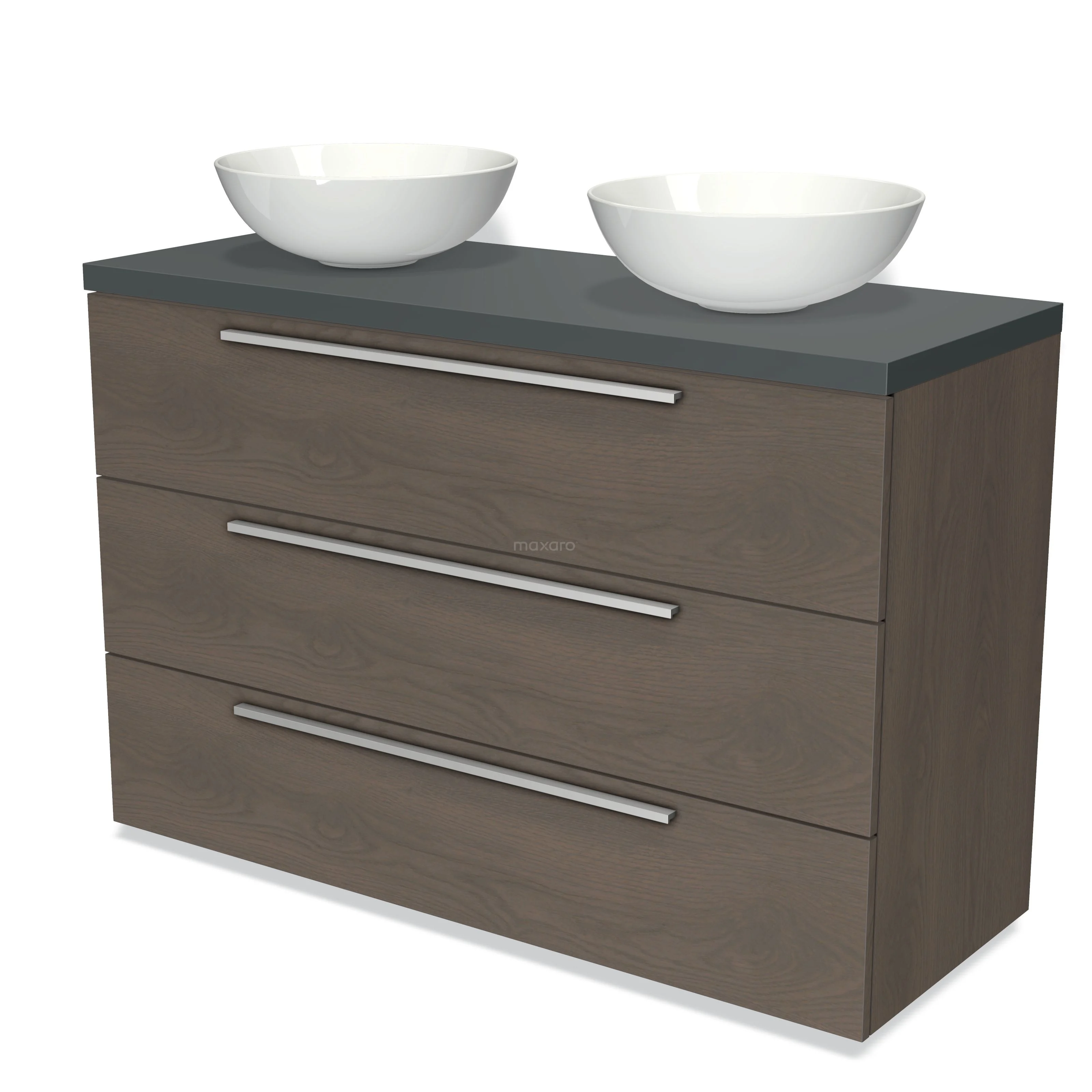 Badmöbel für Waschtischunterschrank mit Konsole 120cm Modulo Plato dunkelbraune Eiche 3 Schubladen Flach dunkelgrau Platte