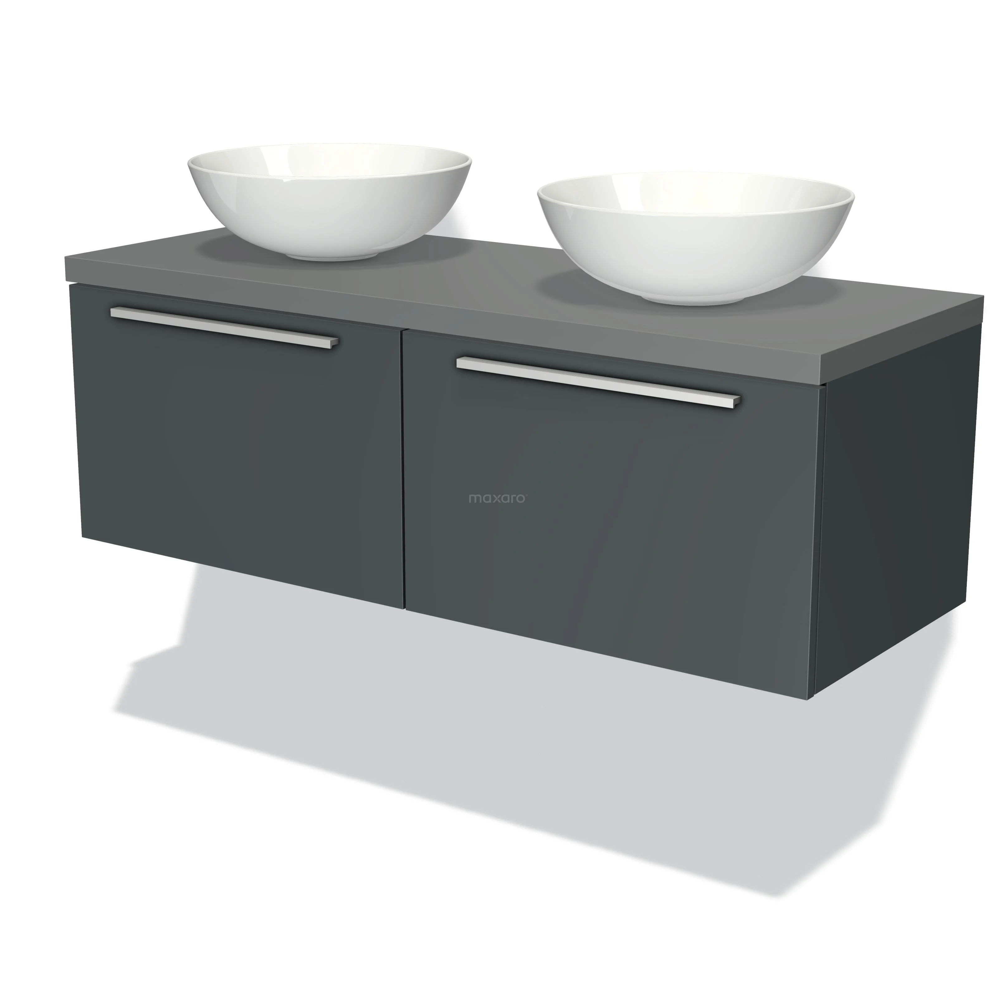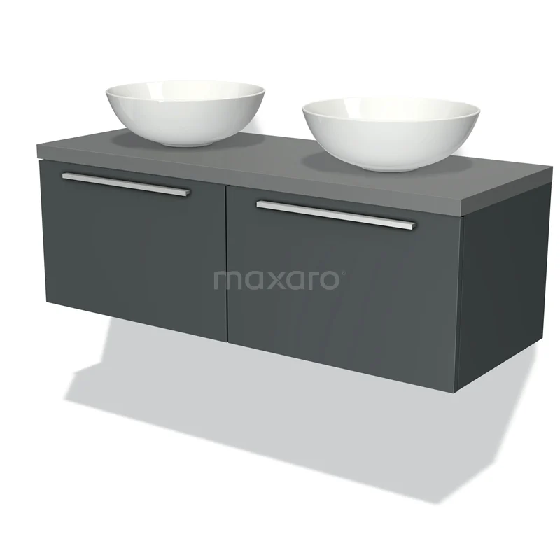 Badmöbel für Waschtischunterschrank mit Konsole 120cm Modulo Plato Dunkelgrau 2 Schubladen Flach Mittelgrau Platte
