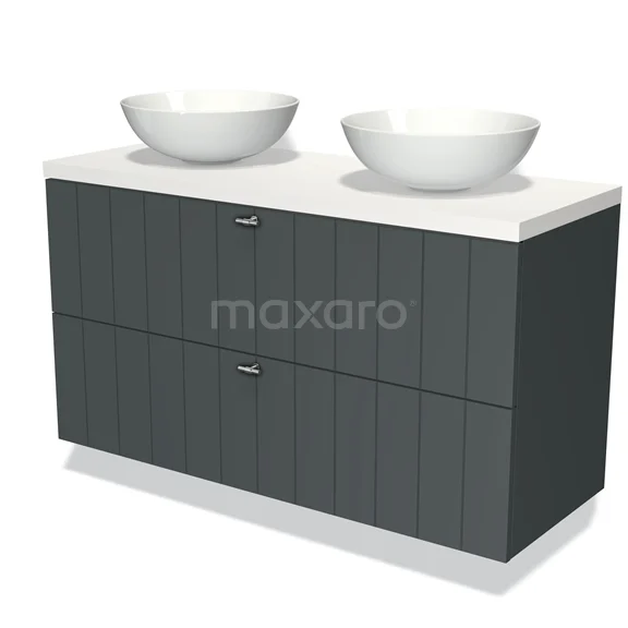 Badmöbel für Waschtischunterschrank mit Konsole 120cm Modulo Plato Dunkelgrau 2 Schubladen Lamelle Matt Weiß Platte