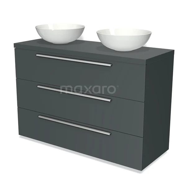 Badmöbel für Waschtischunterschrank mit Konsole 120cm Modulo Plato Dunkelgrau 3 Schubladen Flach