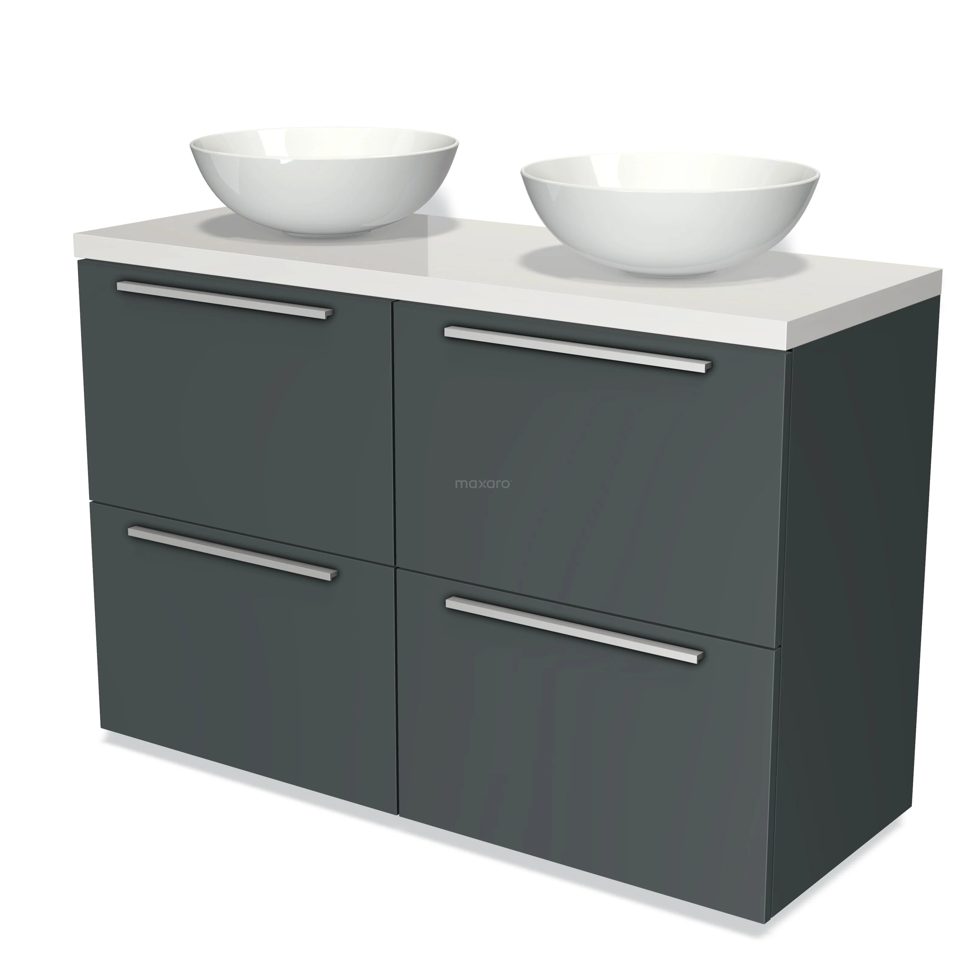 Badmöbel für Waschtischunterschrank mit Konsole 120cm Modulo Plato Dunkelgrau 4 hohe Schubladen Flach Hochglanz Weiß Platte