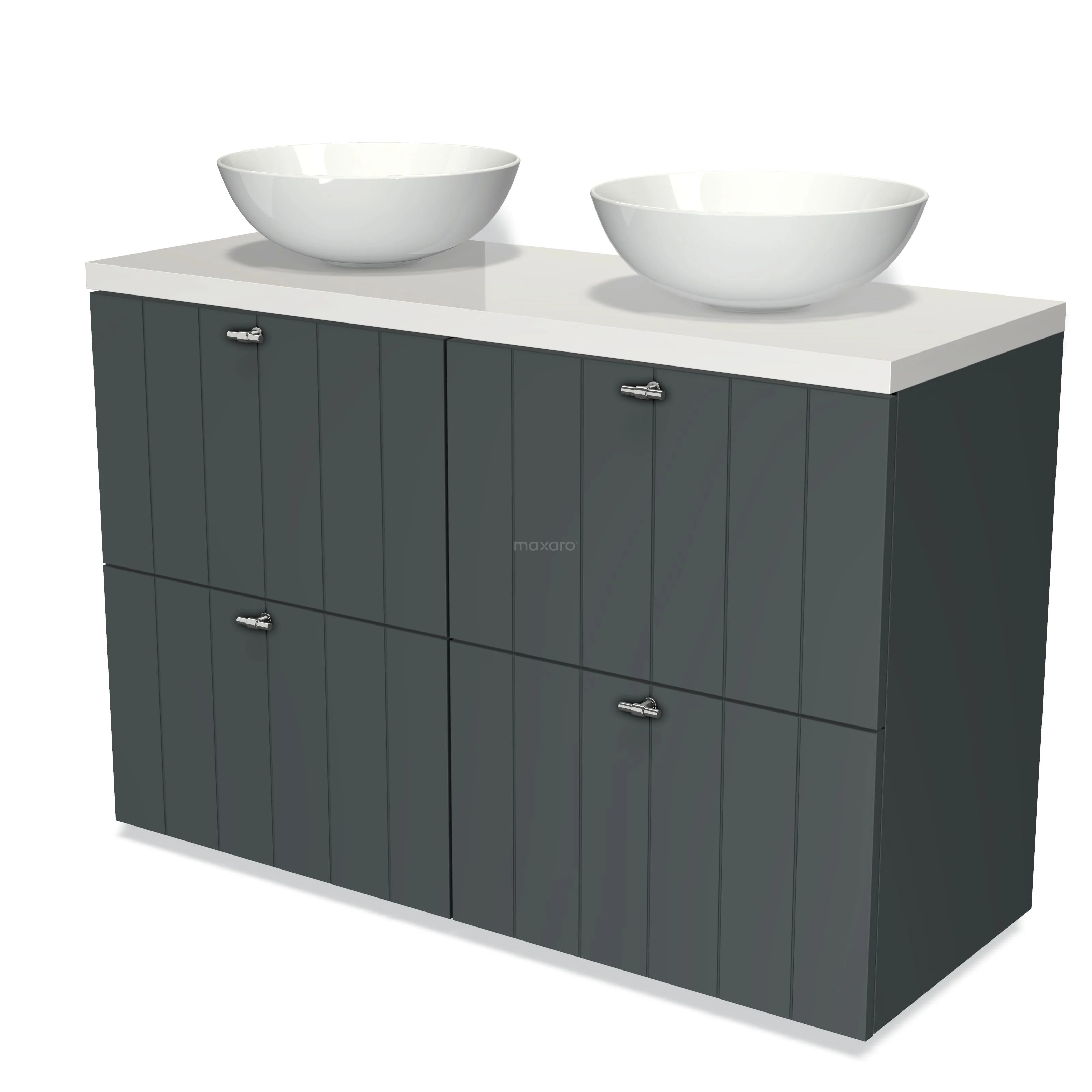 Badmöbel für Waschtischunterschrank mit Konsole 120cm Modulo Plato Dunkelgrau 4 hohe Schubladen Lamelle Hochglanz Weiß Platte