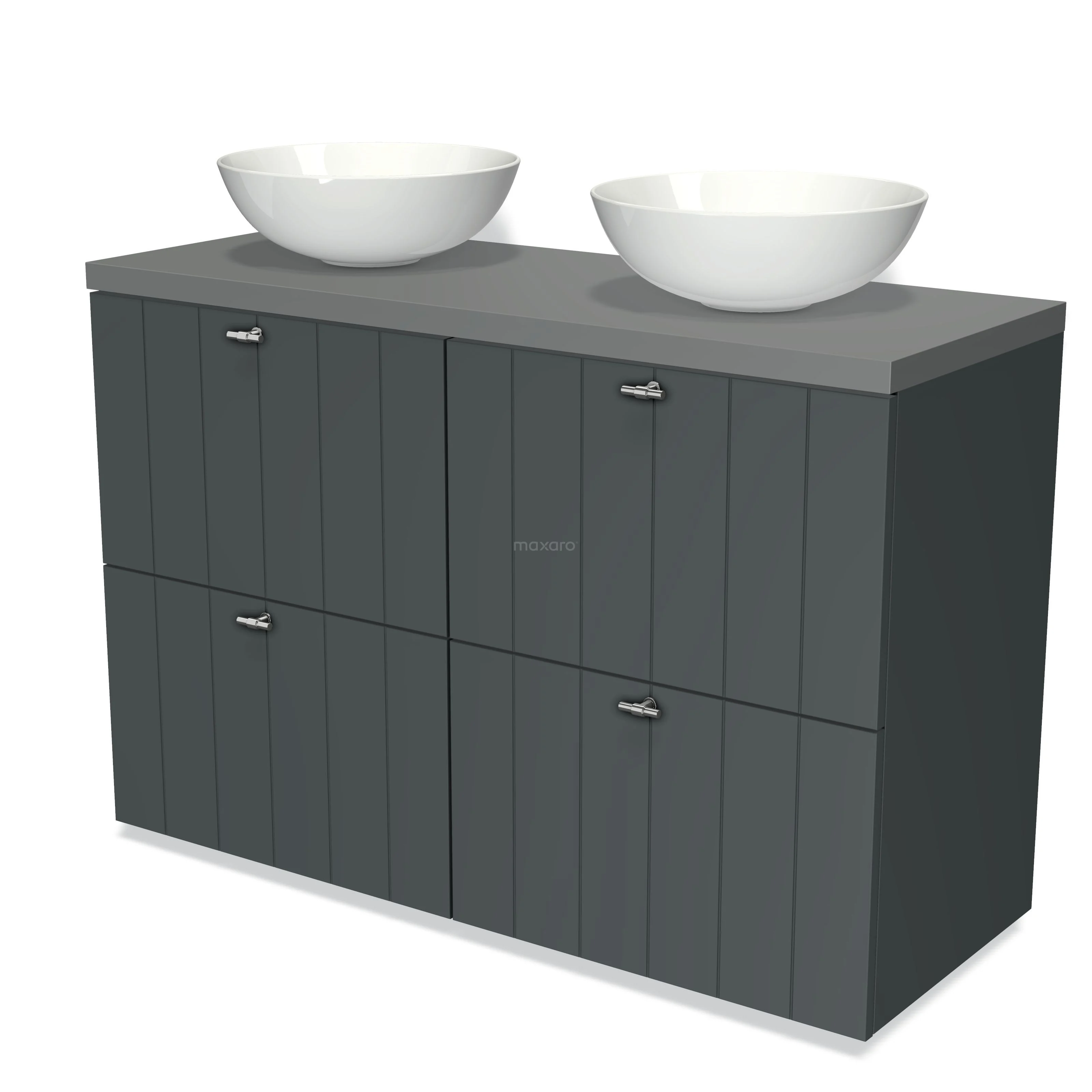 Badmöbel für Waschtischunterschrank mit Konsole 120cm Modulo Plato Dunkelgrau 4 hohe Schubladen Lamelle Mittelgrau Platte