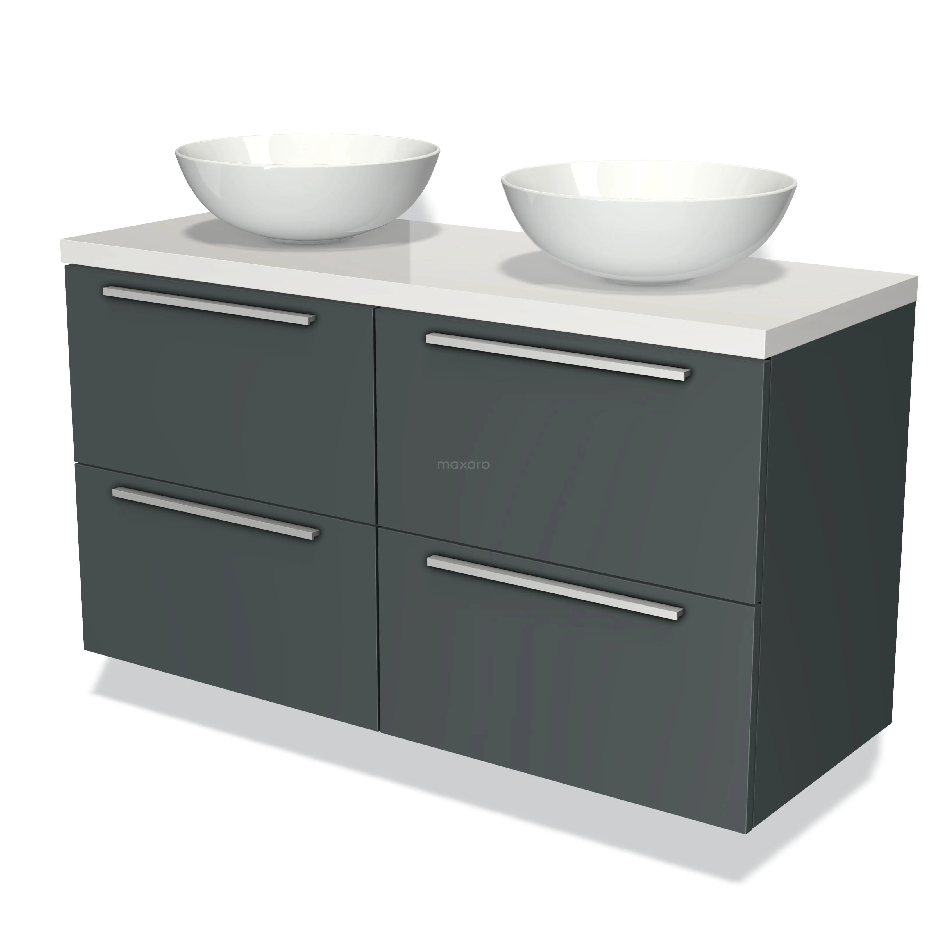 Badmöbel für Waschtischunterschrank mit Konsole 120cm Modulo Plato Dunkelgrau 4 Schubladen Flach Hochglanz Weiß Platte