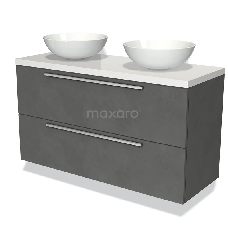 Badmöbel für Waschtischunterschrank mit Konsole 120cm Modulo Plato Dunkelgrau Beton 2 Schubladen Flach Hochglanz Weiß Platte