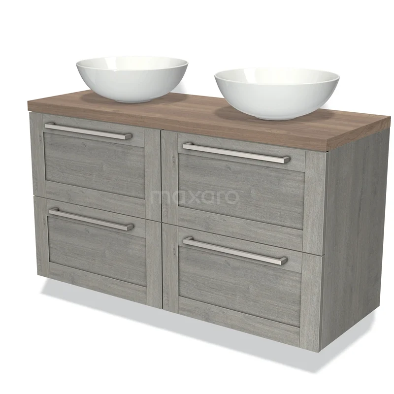 Badmöbel für Waschtischunterschrank mit Konsole 120cm Modulo Plato Grau Eiche 4 Schubladen Rahmen mittelbraune Eiche Platte