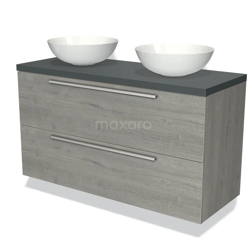 Badmöbel für Waschtischunterschrank mit Konsole 120cm Modulo Plato Graue Eiche 2 Schubladen Flach Dunkelgrau Platte