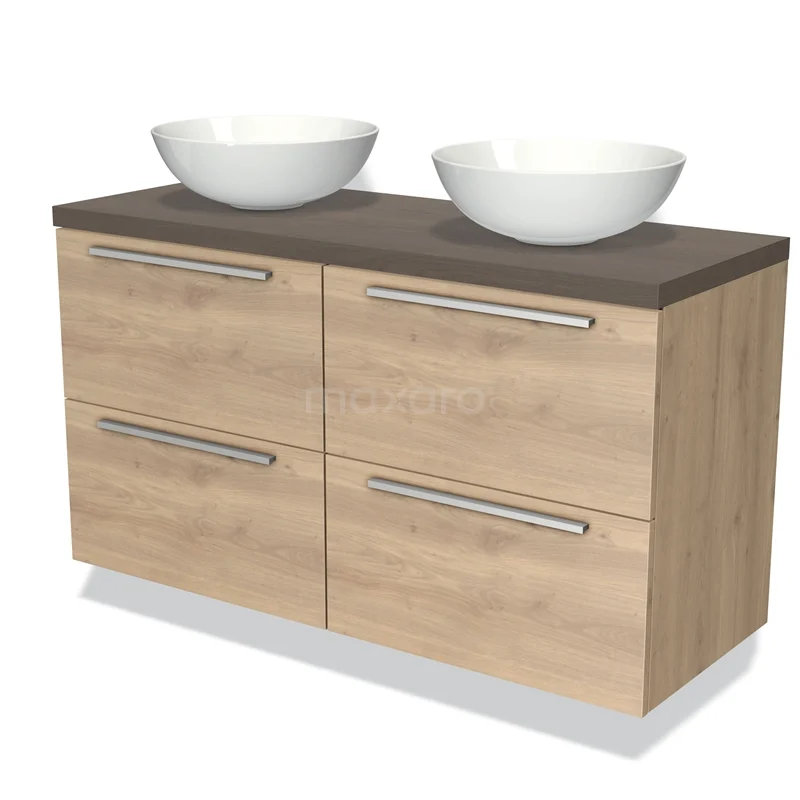 Badmöbel für Waschtischunterschrank mit Konsole 120cm Modulo Plato hellbraune Eiche 4 Schubladen Flach dunkelbraune Eiche Platte
