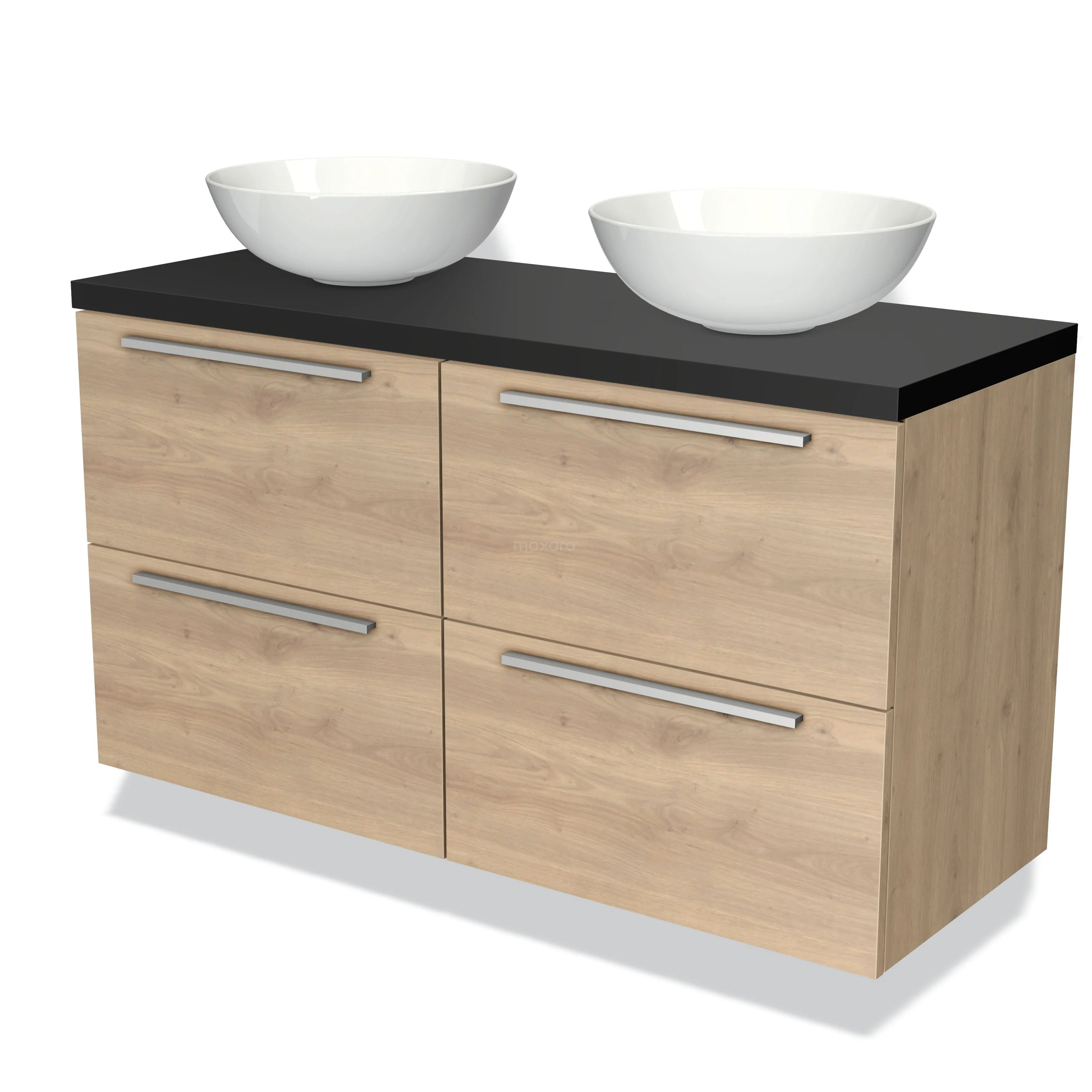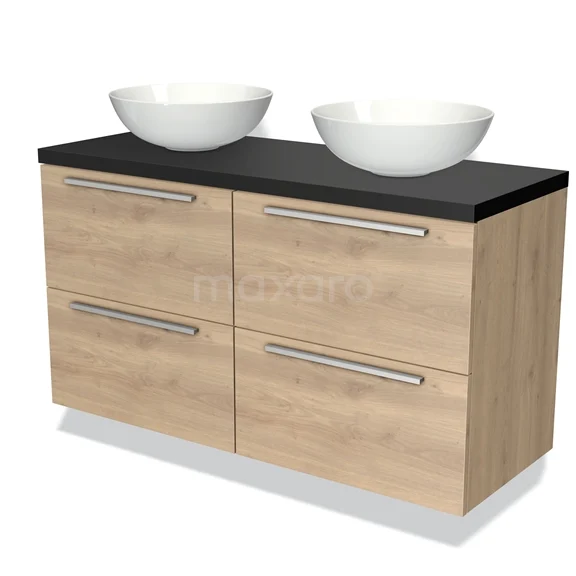 Badmöbel für Waschtischunterschrank mit Konsole 120cm Modulo Plato Hellbraune Eiche 4 Schubladen Flach Matt Schwarz Platte