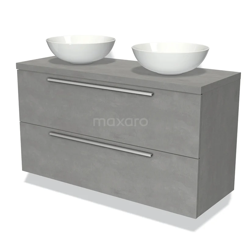 Badmöbel für Waschtischunterschrank mit Konsole 120cm Modulo Plato hellgrauer Beton 2 Schubladen flach