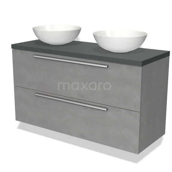 Badmöbel für Waschtischunterschrank mit Konsole 120cm Modulo Plato Hellgrauer Beton 2 Schubladen Flach Dunkelgraue Platte