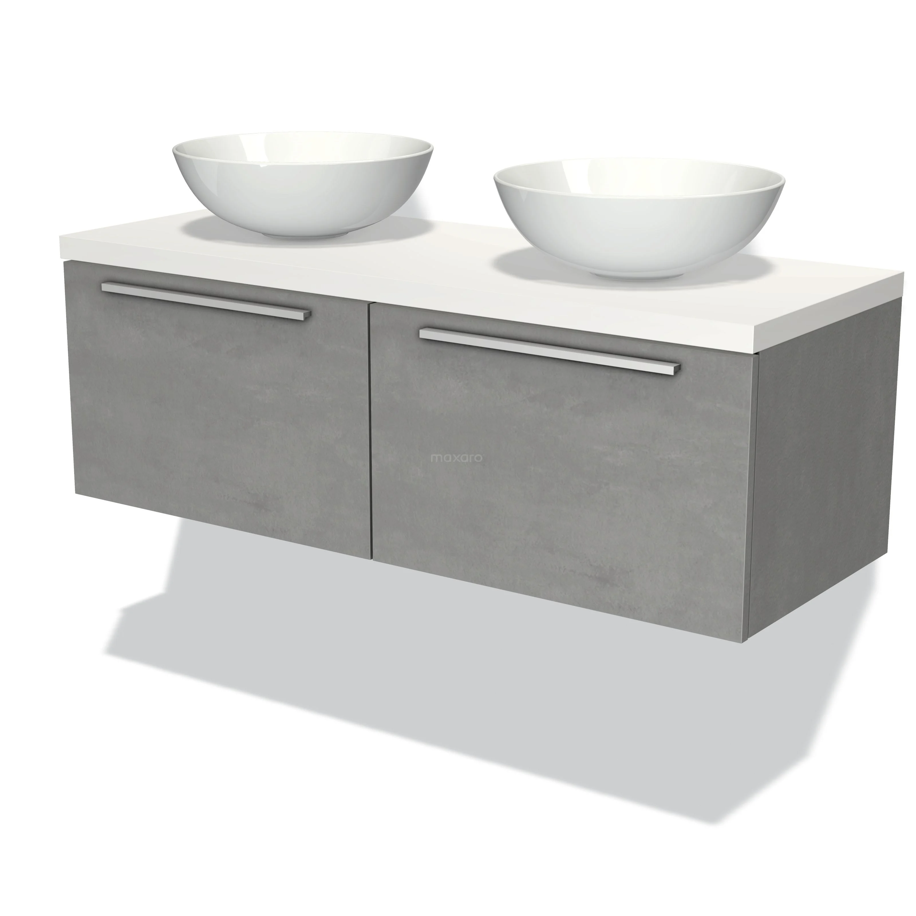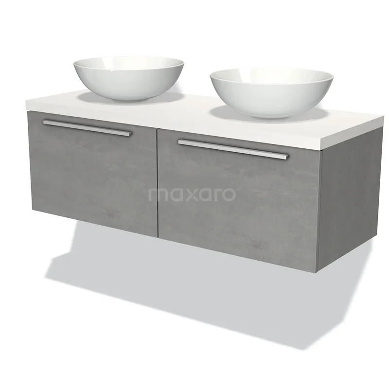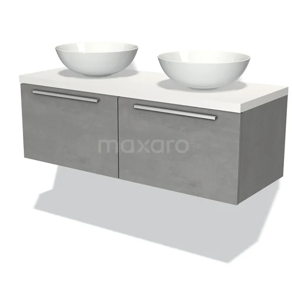 Badmöbel für Waschtischunterschrank mit Konsole 120cm Modulo Plato hellgrauer Beton 2 Schubladen Flach Matt Weiß Platte
