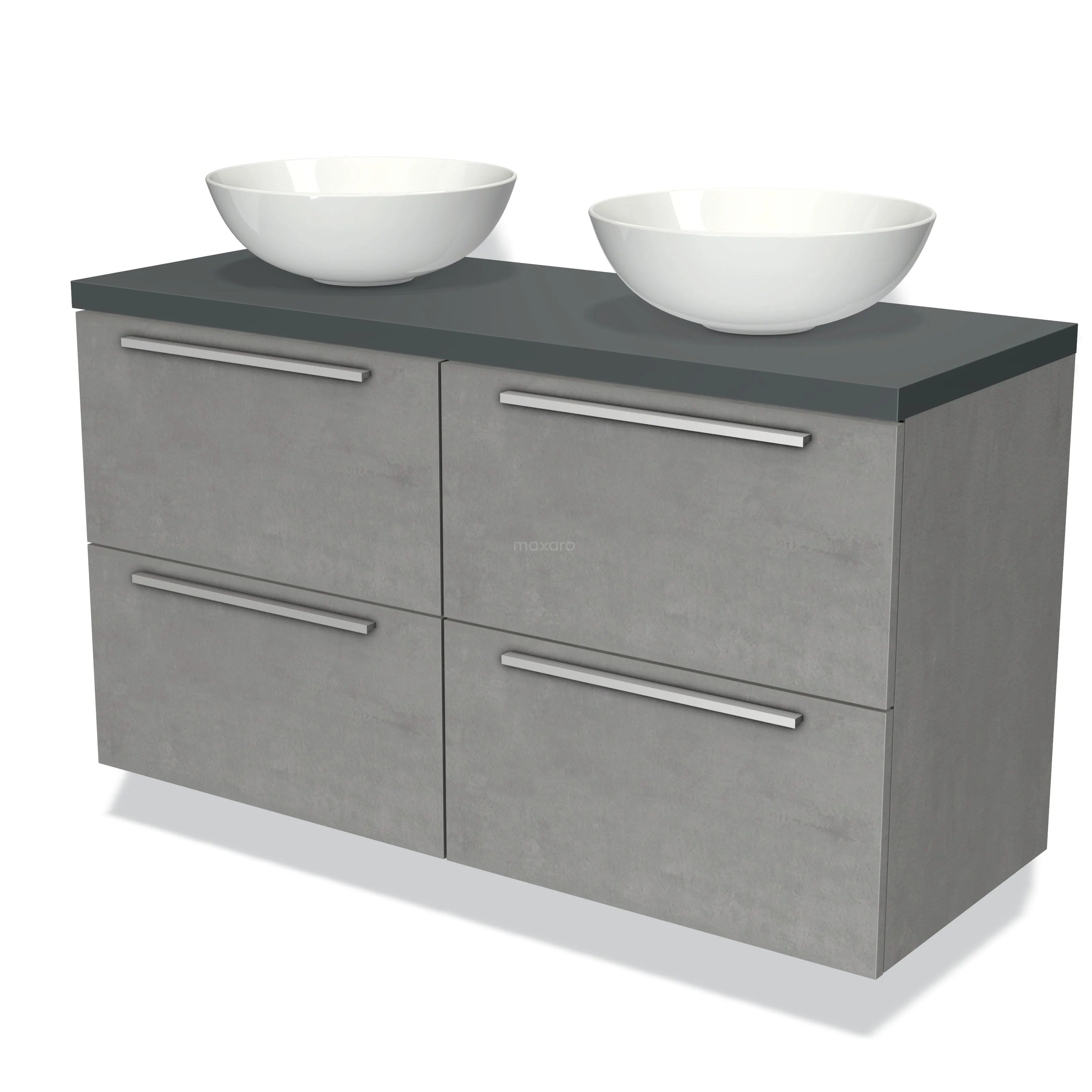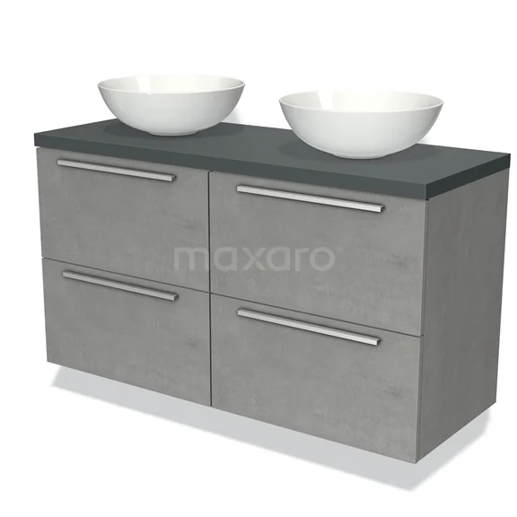 Badmöbel für Waschtischunterschrank mit Konsole 120cm Modulo Plato Hellgrauer Beton 4 Schubladen Flach Dunkelgraue Platte