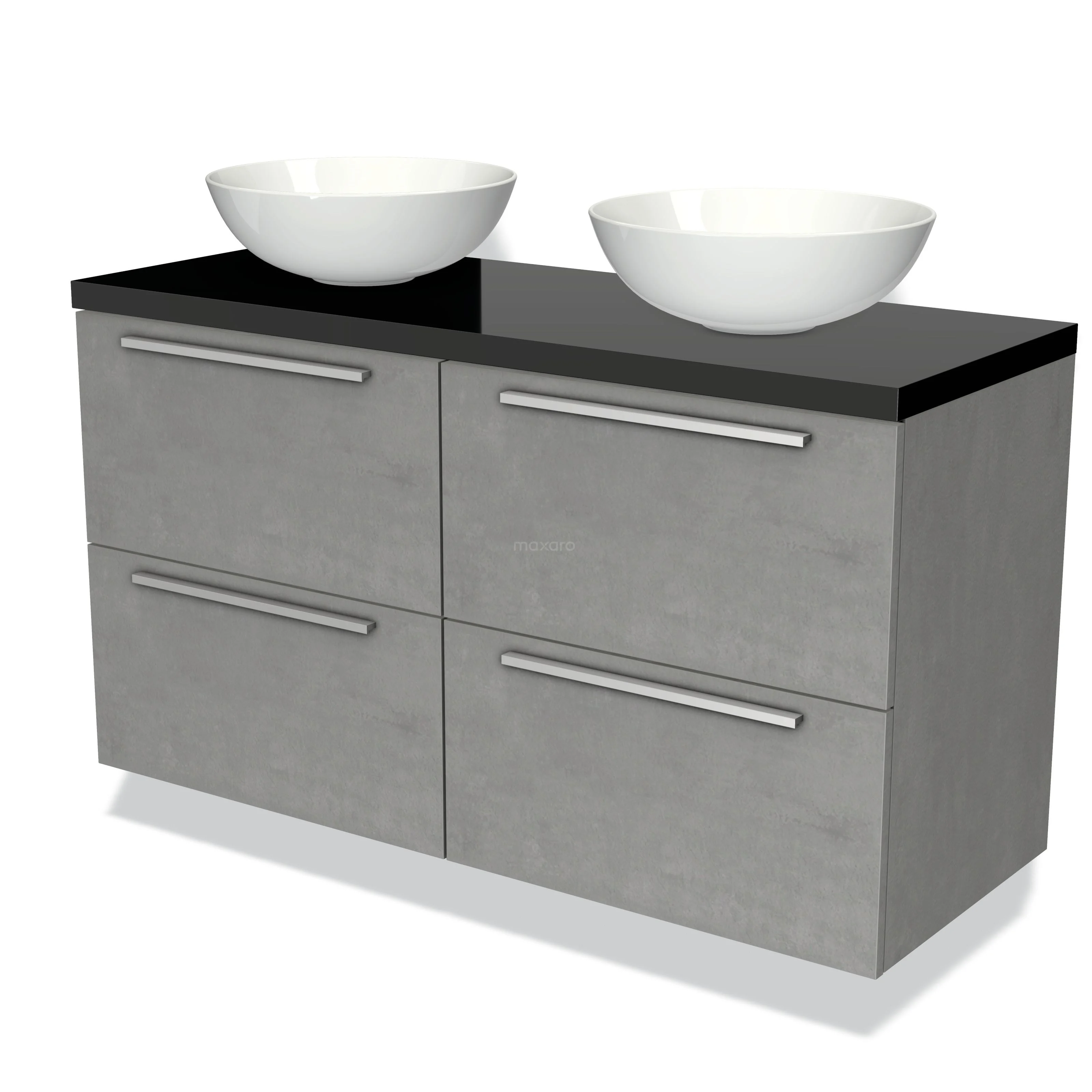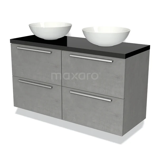Badmöbel für Waschtischunterschrank mit Konsole 120cm Modulo Plato hellgrauer Beton 4 Schubladen Flach Hochglanz Schwarz Platte