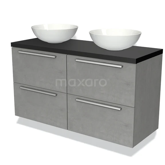 Badmöbel für Waschtischunterschrank mit Konsole 120cm Modulo Plato hellgrauer Beton 4 Schubladen Flach Matt Schwarz Platte