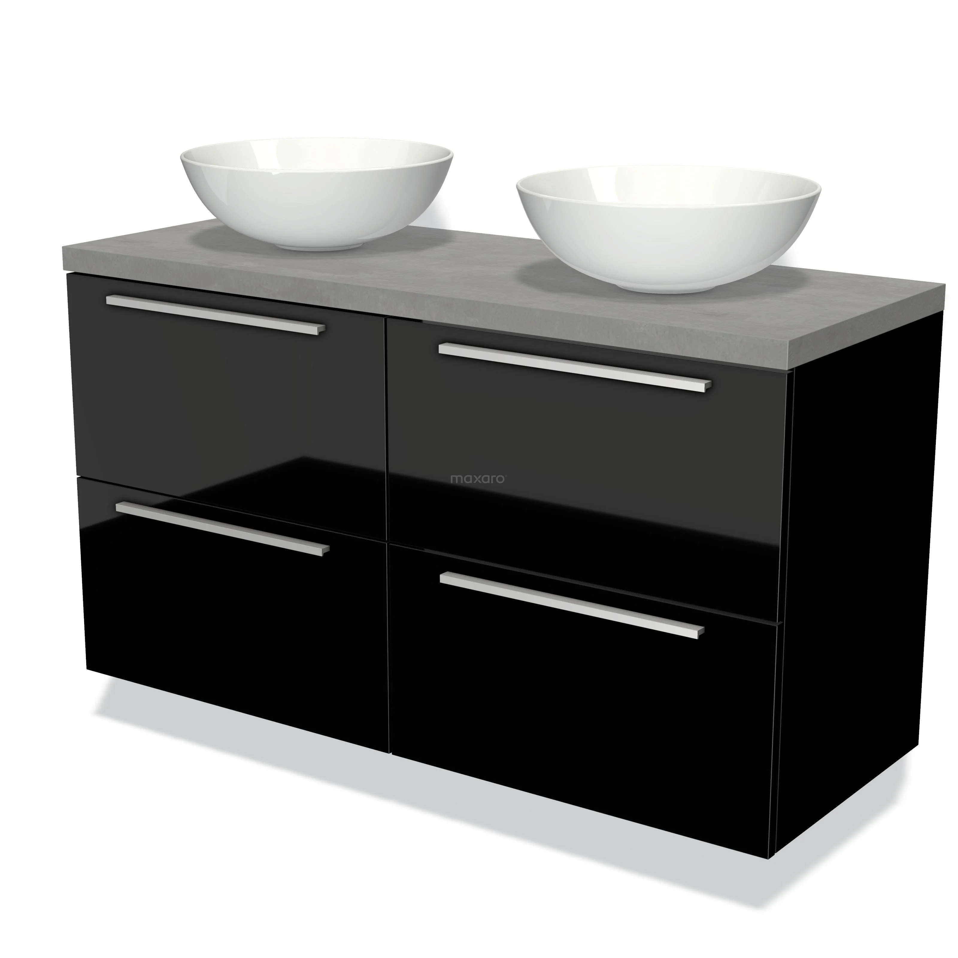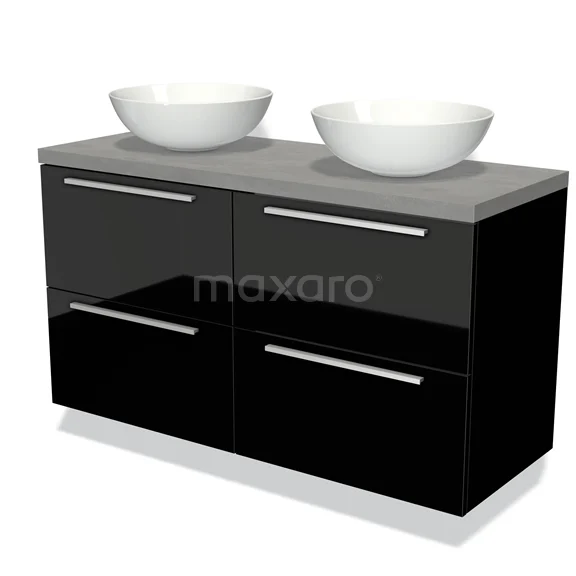 Badmöbel für Waschtischunterschrank mit Konsole 120cm Modulo Plato Hochglanz Schwarz 4 Schubladen Flach Hellgrauer Beton Platte