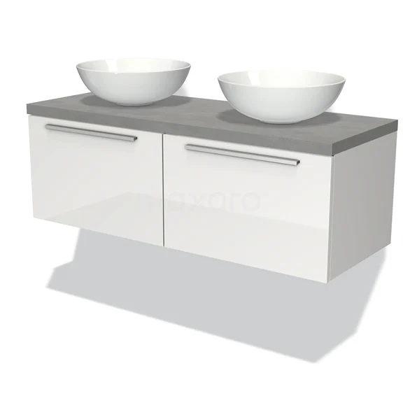 Badmöbel für Waschtischunterschrank mit Konsole 120cm Modulo Plato Hochglanz Weiß 2 Schubladen Flach Hellgrauer Beton Platte