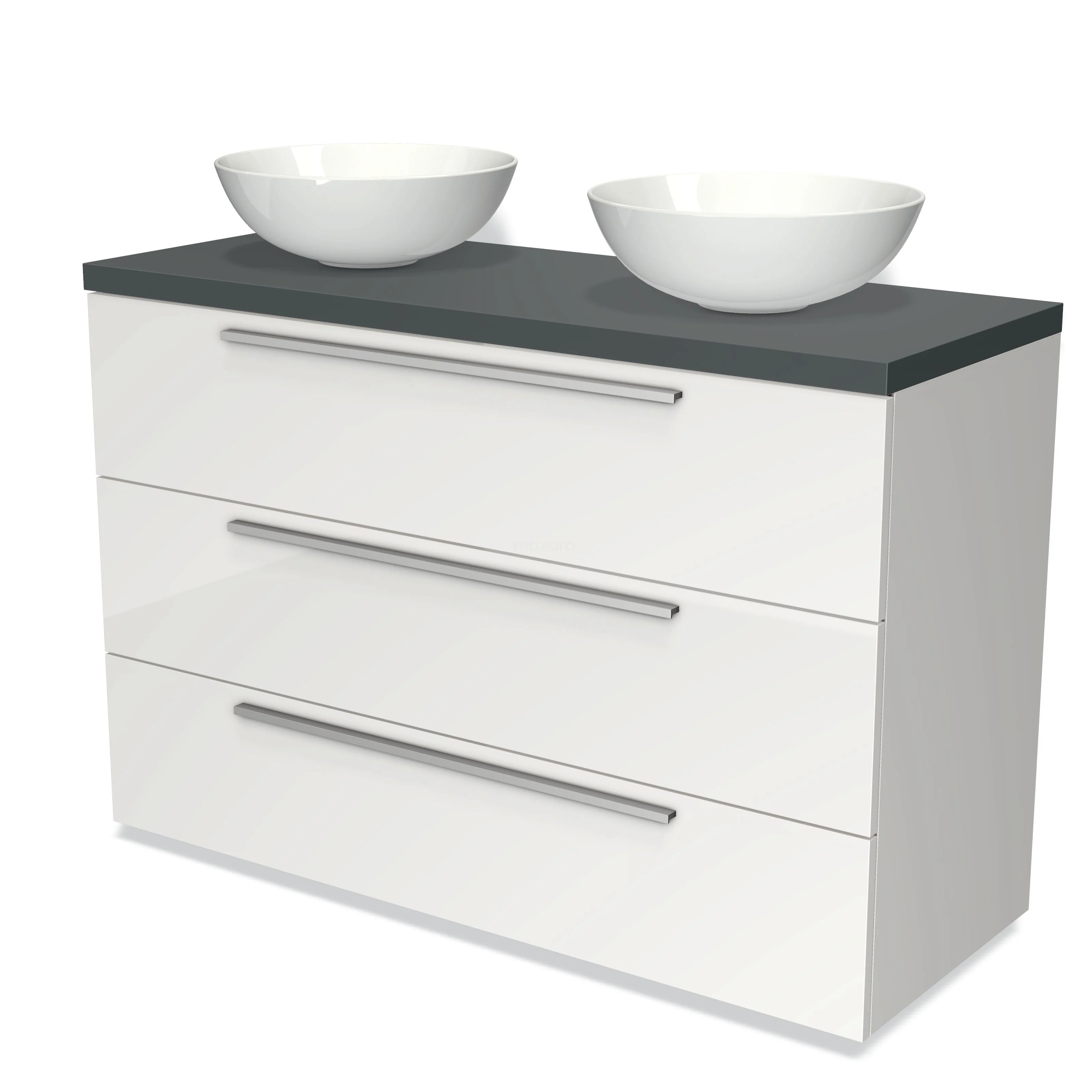 Badmöbel für Waschtischunterschrank mit Konsole 120cm Modulo Plato Hochglanz Weiß 3 Schubladen Flach Dunkelgrau Platte