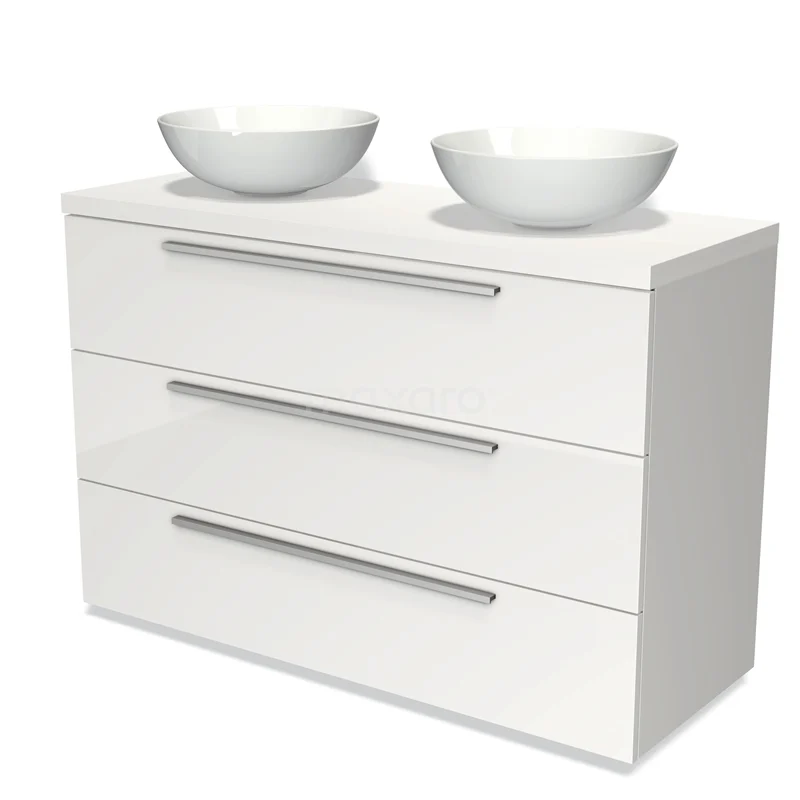 Badmöbel für Waschtischunterschrank mit Konsole 120cm Modulo Plato Hochglanz Weiß 3 Schubladen Flach Matt Weiß Platte