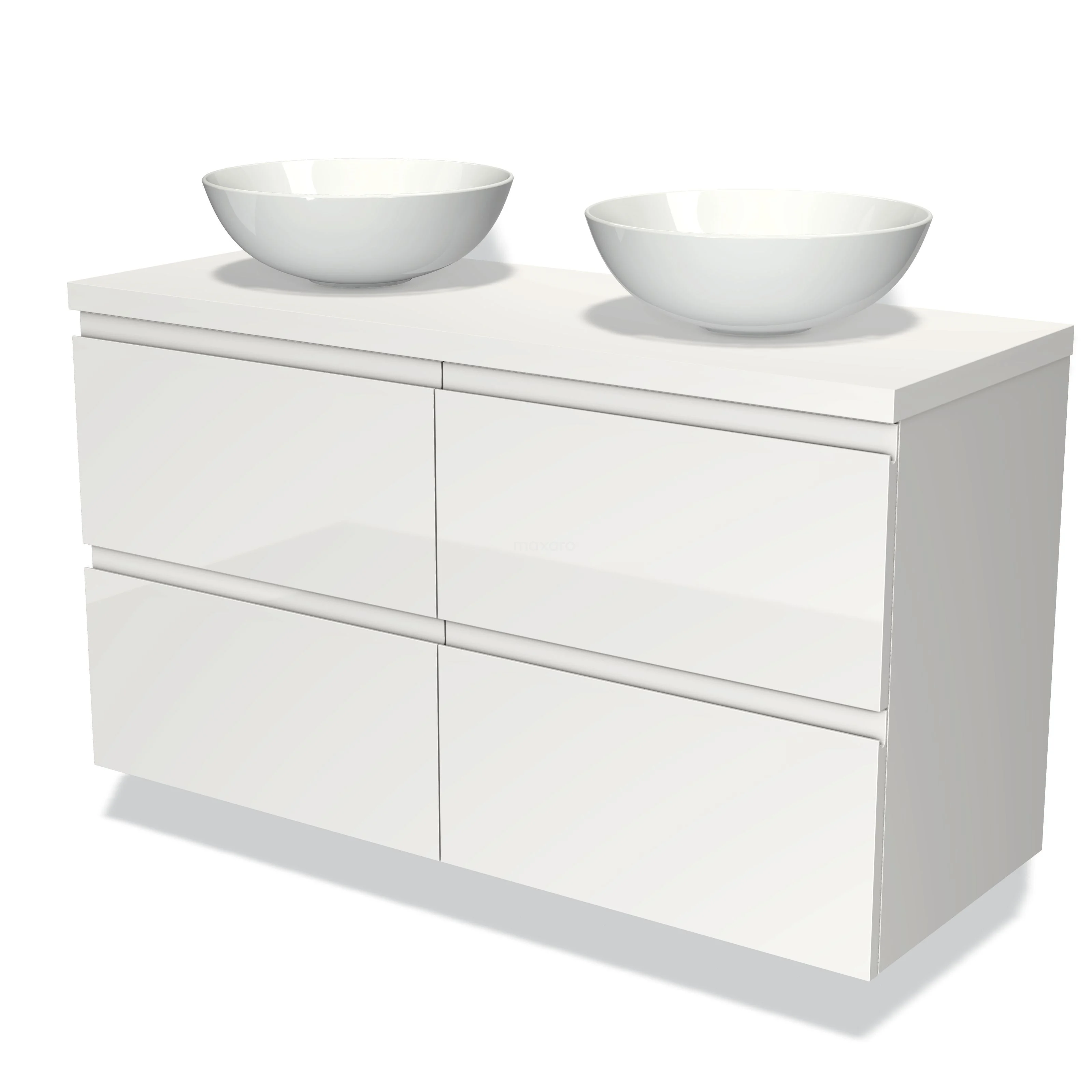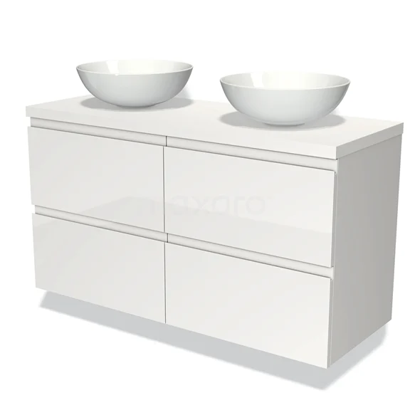 Badmöbel für Waschtischunterschrank mit Konsole 120cm Modulo Plato Hochglanz Weiß 4 Schubladen Grifflos Matt Weiß Platte