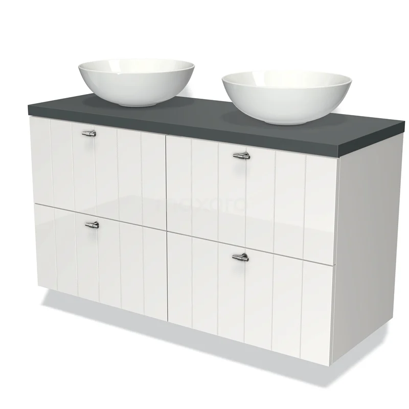 Badmöbel für Waschtischunterschrank mit Konsole 120cm Modulo Plato Hochglanz Weiß 4 Schubladen Lamelle Dunkelgrau Platte