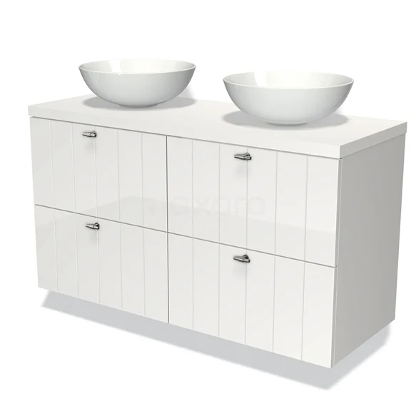 Badmöbel für Waschtischunterschrank mit Konsole 120cm Modulo Plato Hochglanz Weiß 4 Schubladen Latte Matt Weiß Platte