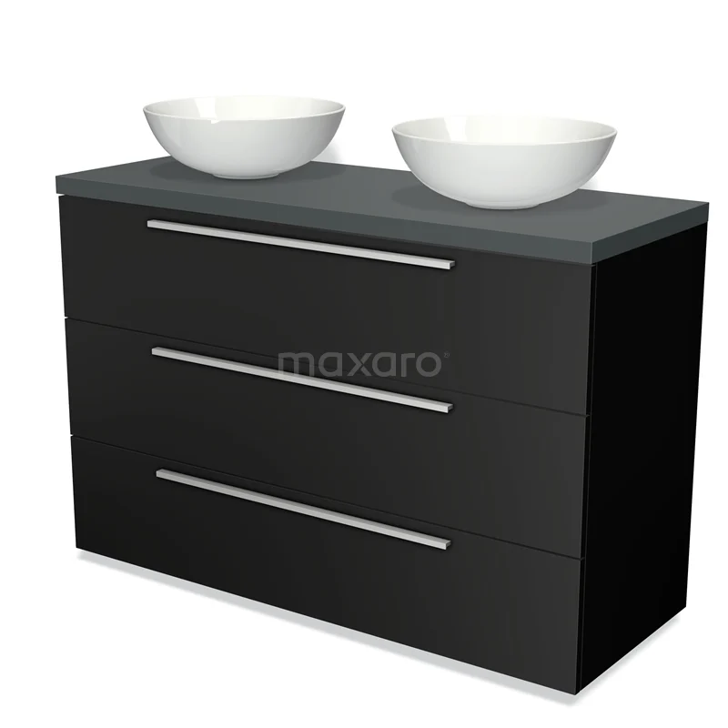 Modulo Plato Badmöbel mit Aufsatzwaschbecken | 120 cm Matt Schwarz Flach front Dunkelgrau blatt 3 Schubladen