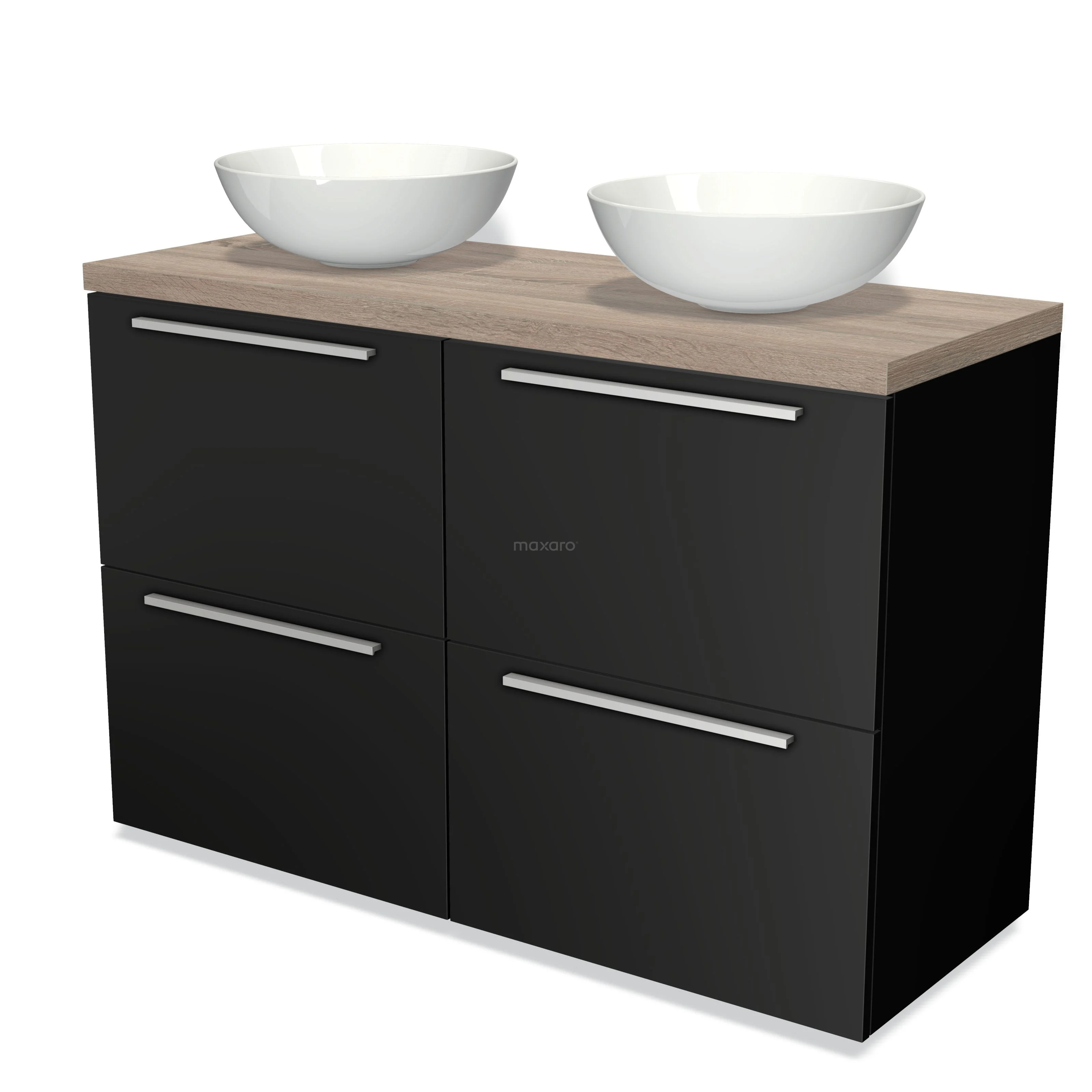 Badmöbel für Waschtischunterschrank mit Konsole 120cm Modulo Plato Matt Schwarz 4 hohe Schubladen Flach Eiche Platte