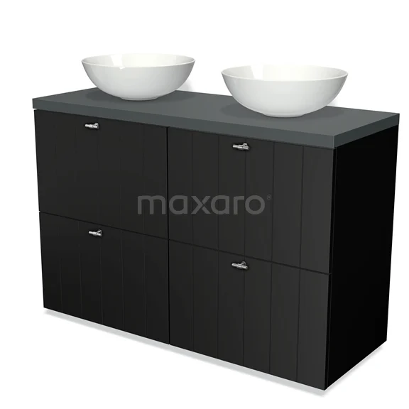 Badmöbel für Waschtischunterschrank mit Konsole 120cm Modulo Plato Matt Schwarz 4 hohe Schubladen Lamelle Dunkelgrau Platte