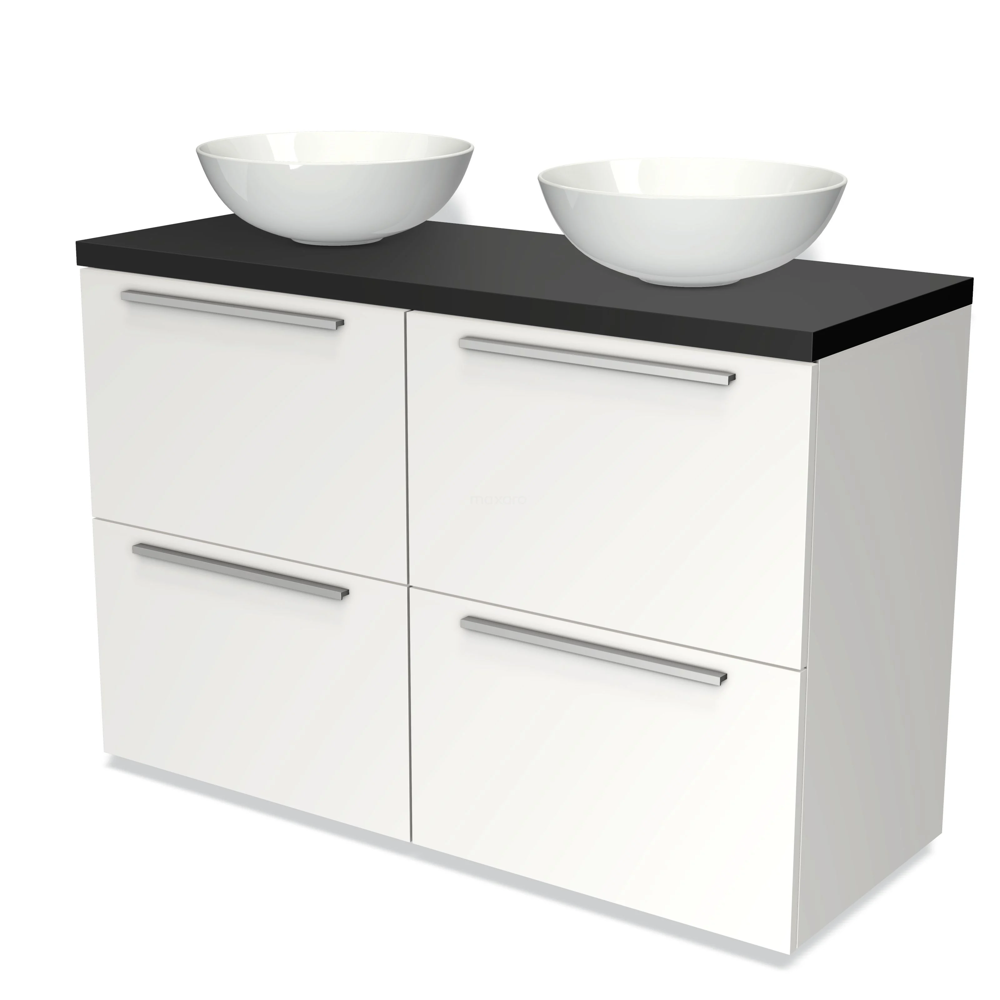 Badmöbel für Waschtischunterschrank mit Konsole 120cm Modulo Plato Matt Weiß 4 hohe Schubladen Flach Matt Schwarz Platte