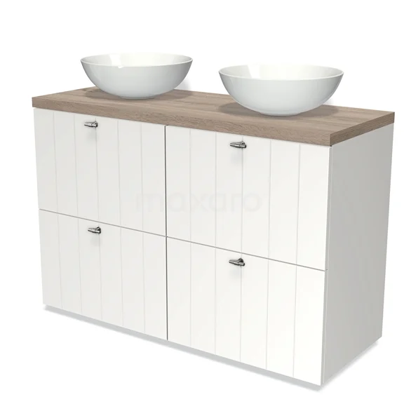 Badmöbel für Waschtischunterschrank mit Konsole 120cm Modulo Plato Matt Weiß 4 hohe Schubladen Lamelle Eiche Platte