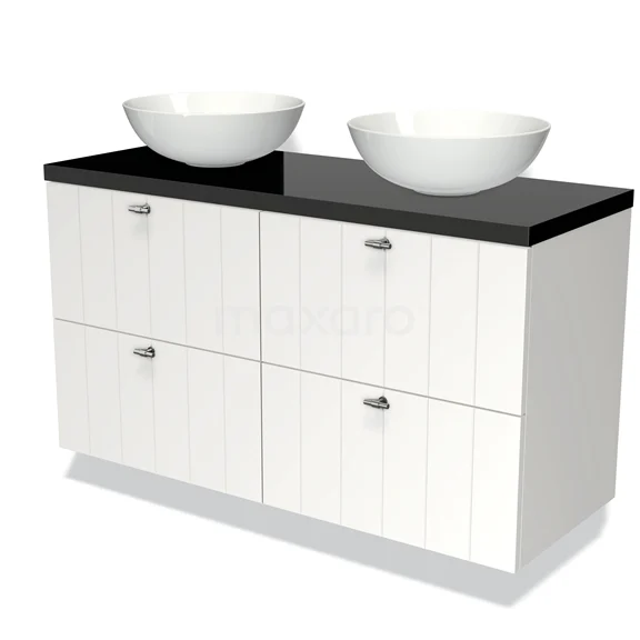Badmöbel für Waschtischunterschrank mit Konsole 120cm Modulo Plato Matt Weiß 4 Schubladen Lamelle Hochglanz Schwarz Platte