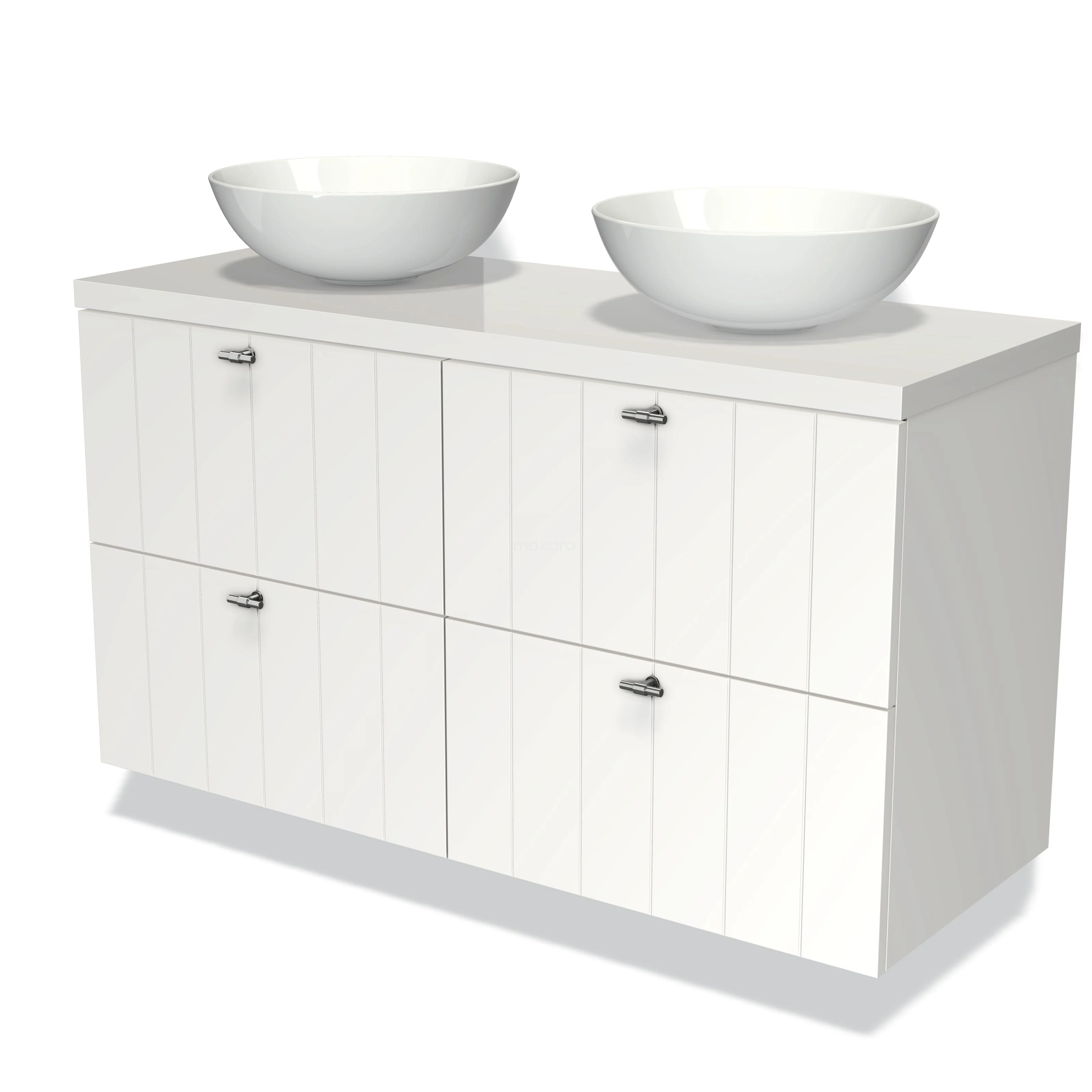 Badmöbel für Waschtischunterschrank mit Konsole 120cm Modulo Plato Matt Weiß 4 Schubladen Latte Hochglanz Weiß Platte