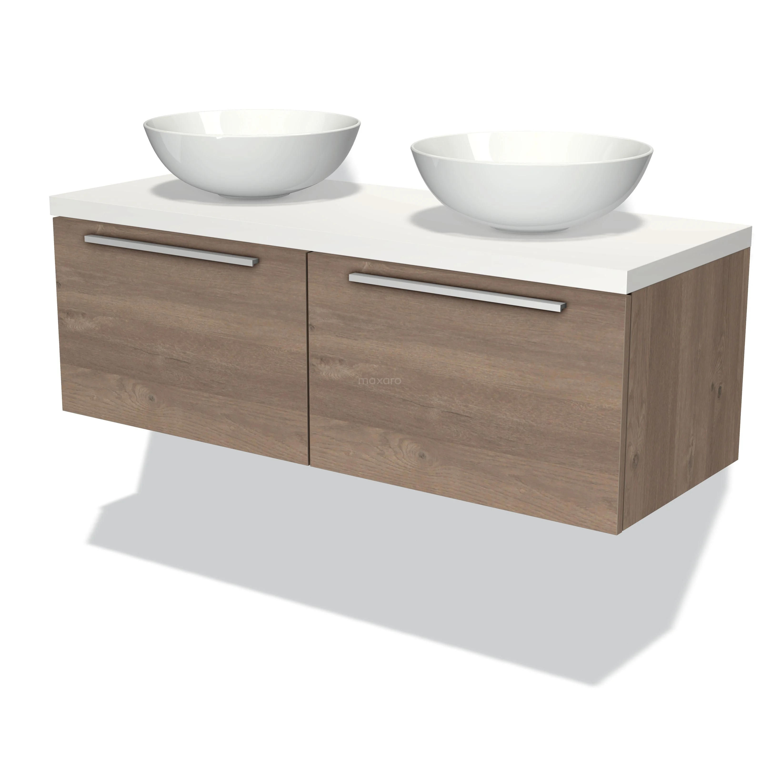 Badmöbel für Waschtischunterschrank mit Konsole 120cm Modulo Plato Mittelbraune Eiche 2 Schubladen Flach Matt Weiß Platte
