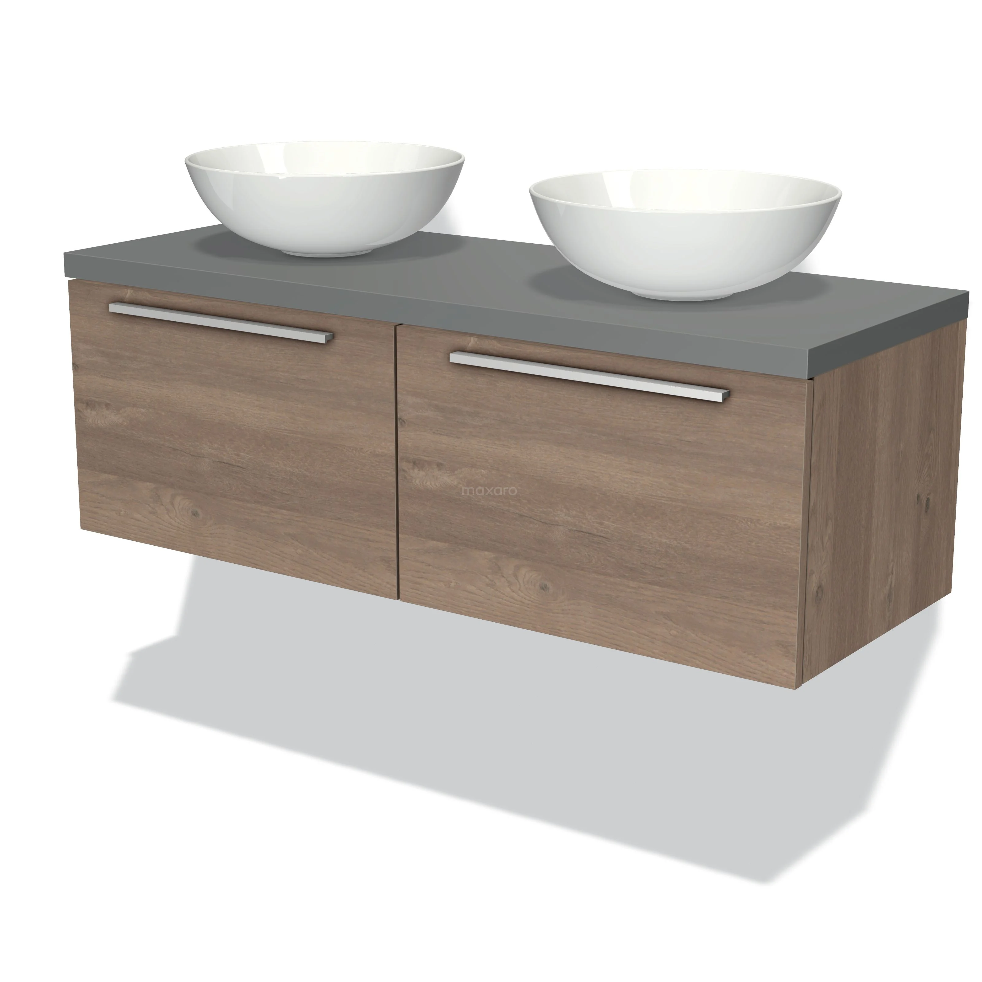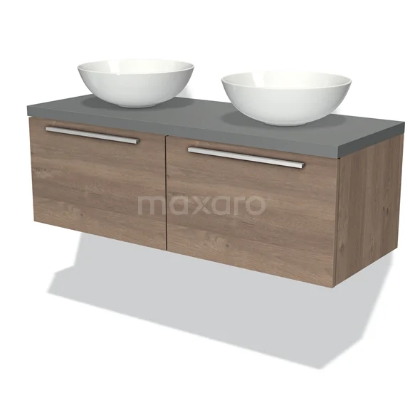 Badmöbel für Waschtischunterschrank mit Konsole 120cm Modulo Plato Mittelbraune Eiche 2 Schubladen Flach Mittelgrau Platte