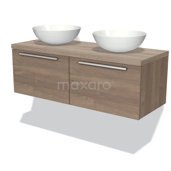 Badmöbel für Waschtischunterschrank mit Konsole 120cm Modulo Plato mittelbraune Eiche 2 Schubladen Flache Platte aus Eiche