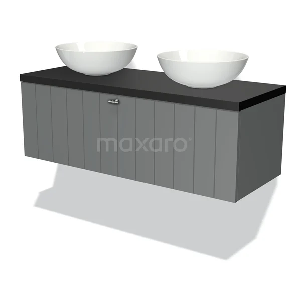 Badmöbel für Waschtischunterschrank mit Konsole 120cm Modulo Plato Mittelgrau 1 Schublade Schiefer Matt Schwarz Platte