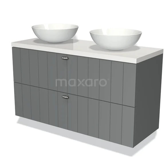 Badmöbel für Waschtischunterschrank mit Konsole 120cm Modulo Plato Mittelgrau 2 Schubladen Latten Hochglanz Weiß Platte