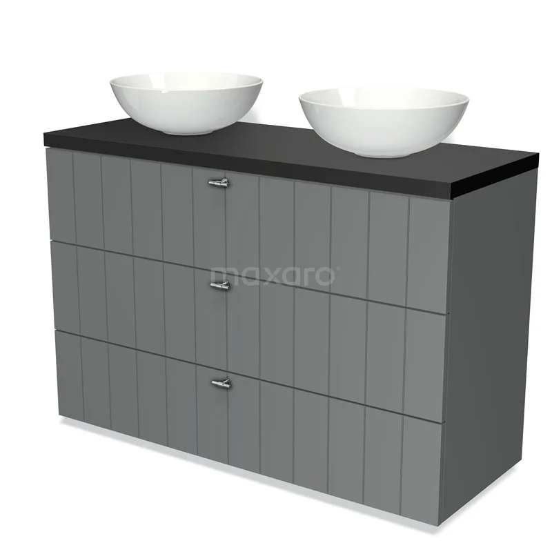 Badmöbel für Waschtischunterschrank mit Konsole 120cm Modulo Plato Mittelgrau 3 Schubladen Schiefer Matt Schwarz Platte