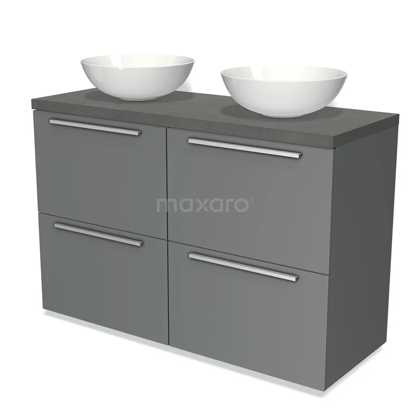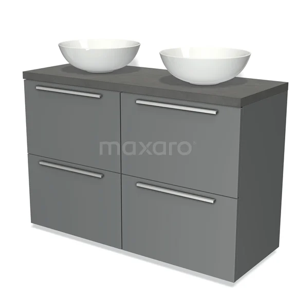 Badmöbel für Waschtischunterschrank mit Konsole 120cm Modulo Plato Mittelgrau 4 hohe Schubladen Flach Dunkelgrauer Beton Platte