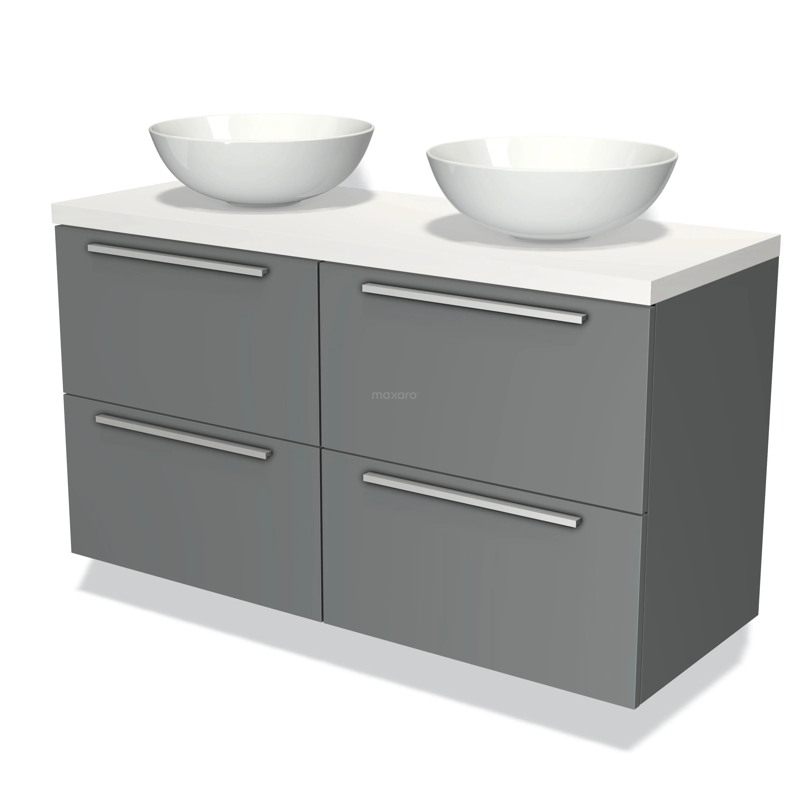 Badmöbel für Waschtischunterschrank mit Konsole 120cm Modulo Plato Mittelgrau 4 Schubladen Flach Matt Weiß Platte
