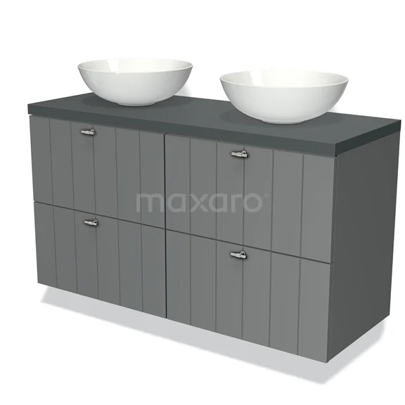 Badmöbel für Waschtischunterschrank mit Konsole 120cm Modulo Plato Mittelgrau 4 Schubladen Latte Dunkelgrau Platte
