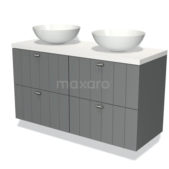 Badmöbel für Waschtischunterschrank mit Konsole 120cm Modulo Plato Mittelgrau 4 Schubladen Schiefer Matt Weiß Platte