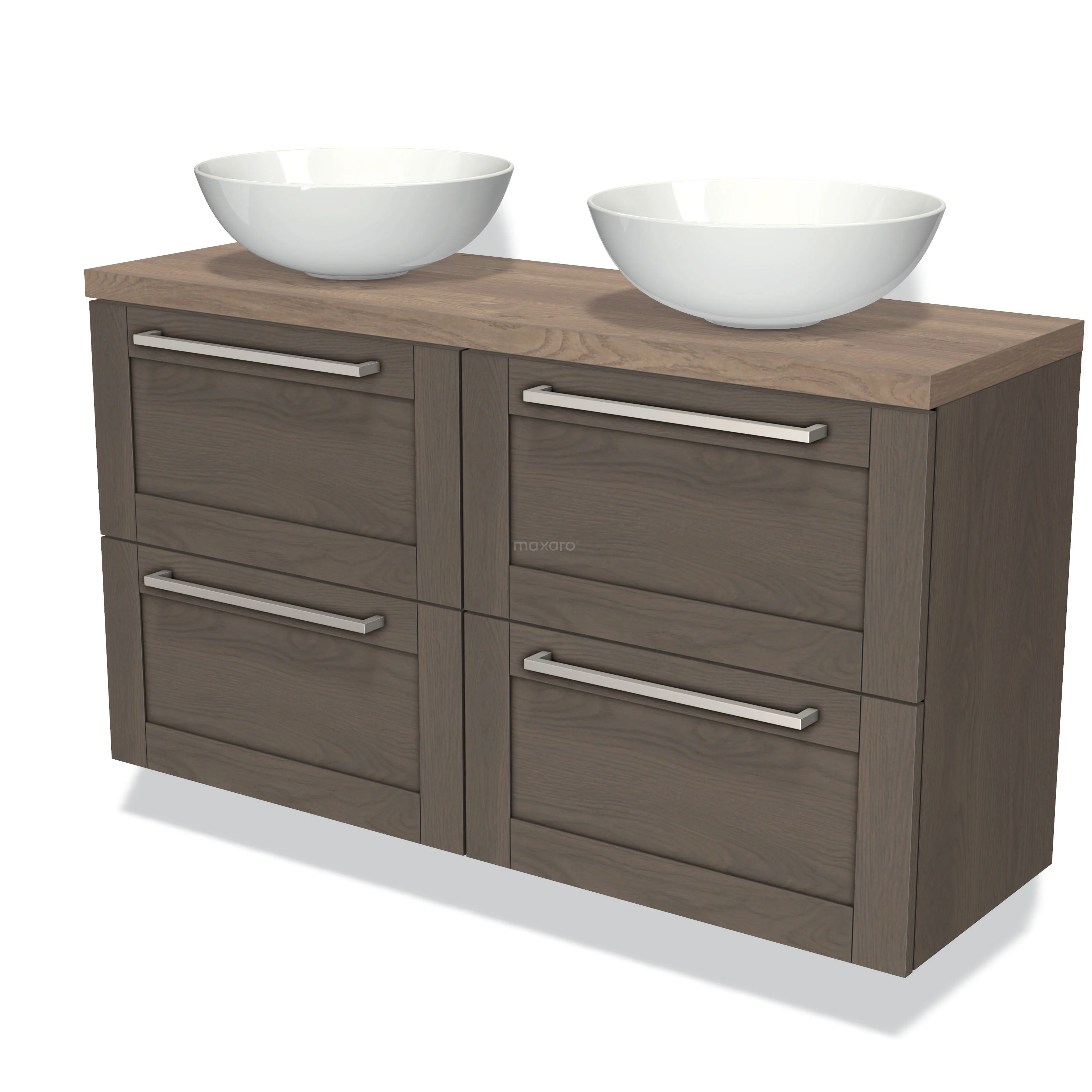 Badmöbel für Waschtischunterschrank mit Konsole 120cm Modulo Plato Slim dunkelbraune Eiche 4 Schubladen Rahmen mittelbraune Eiche Platte