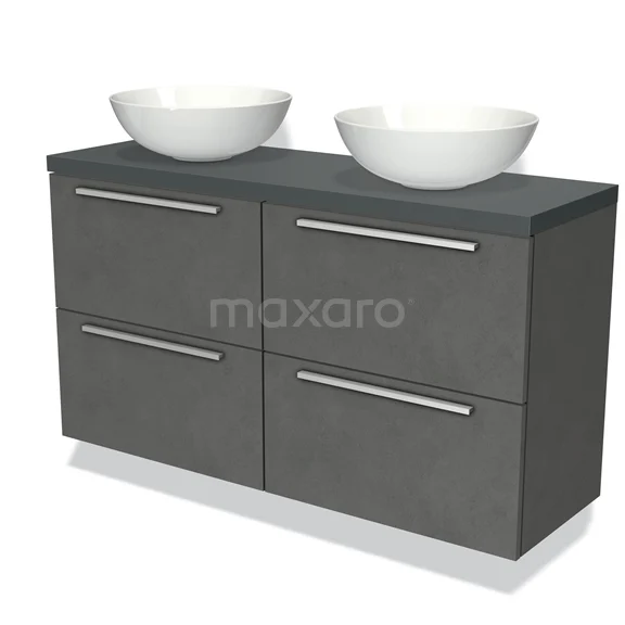 Badmöbel für Waschtischunterschrank mit Konsole 120cm Modulo Plato Slim Dunkelgrau Beton 4 Schubladen Flach Dunkelgrau Platte