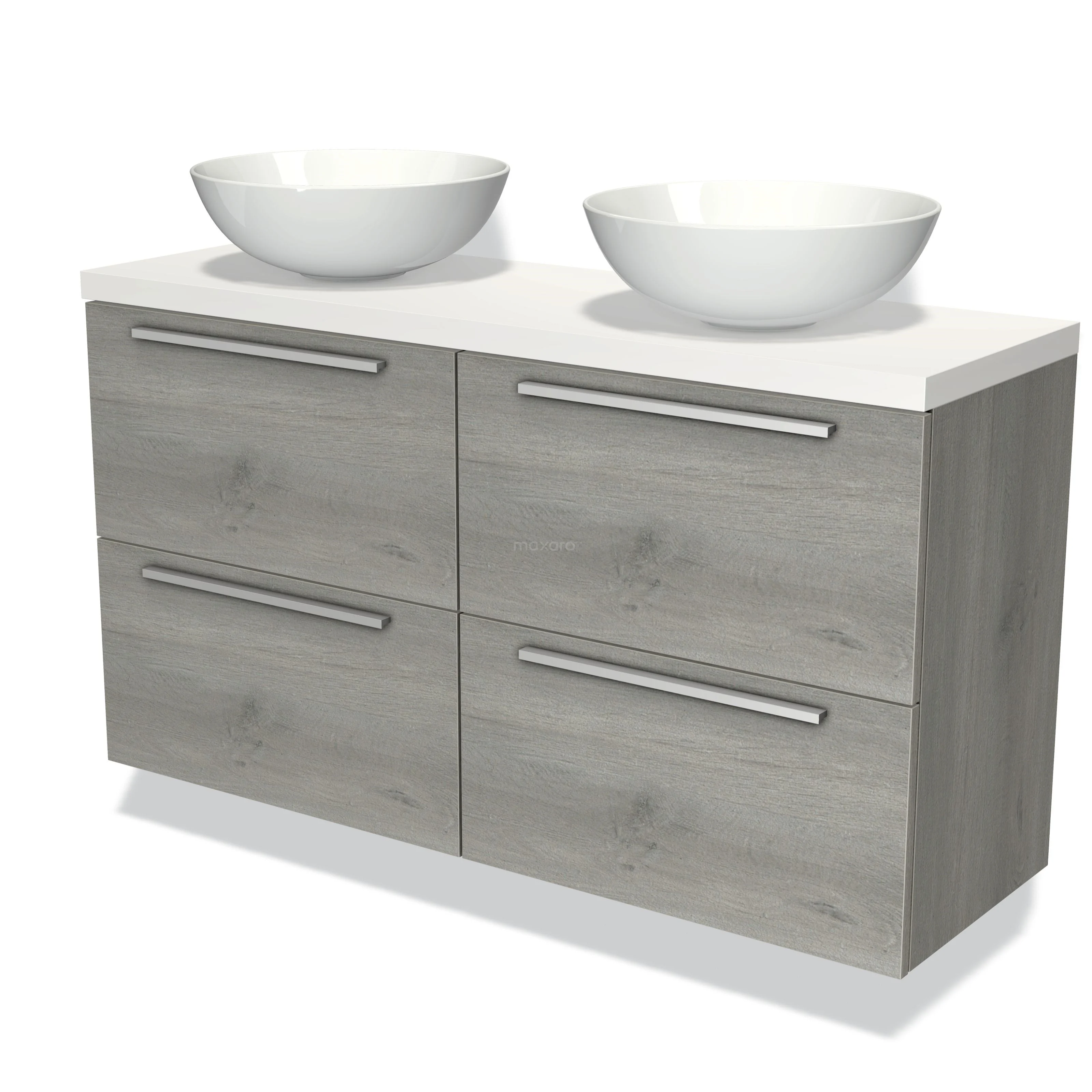Badmöbel für Waschtischunterschrank mit Konsole 120cm Modulo Plato Slim Grau Eiche 4 Schubladen Flach Matt Weiß Platte