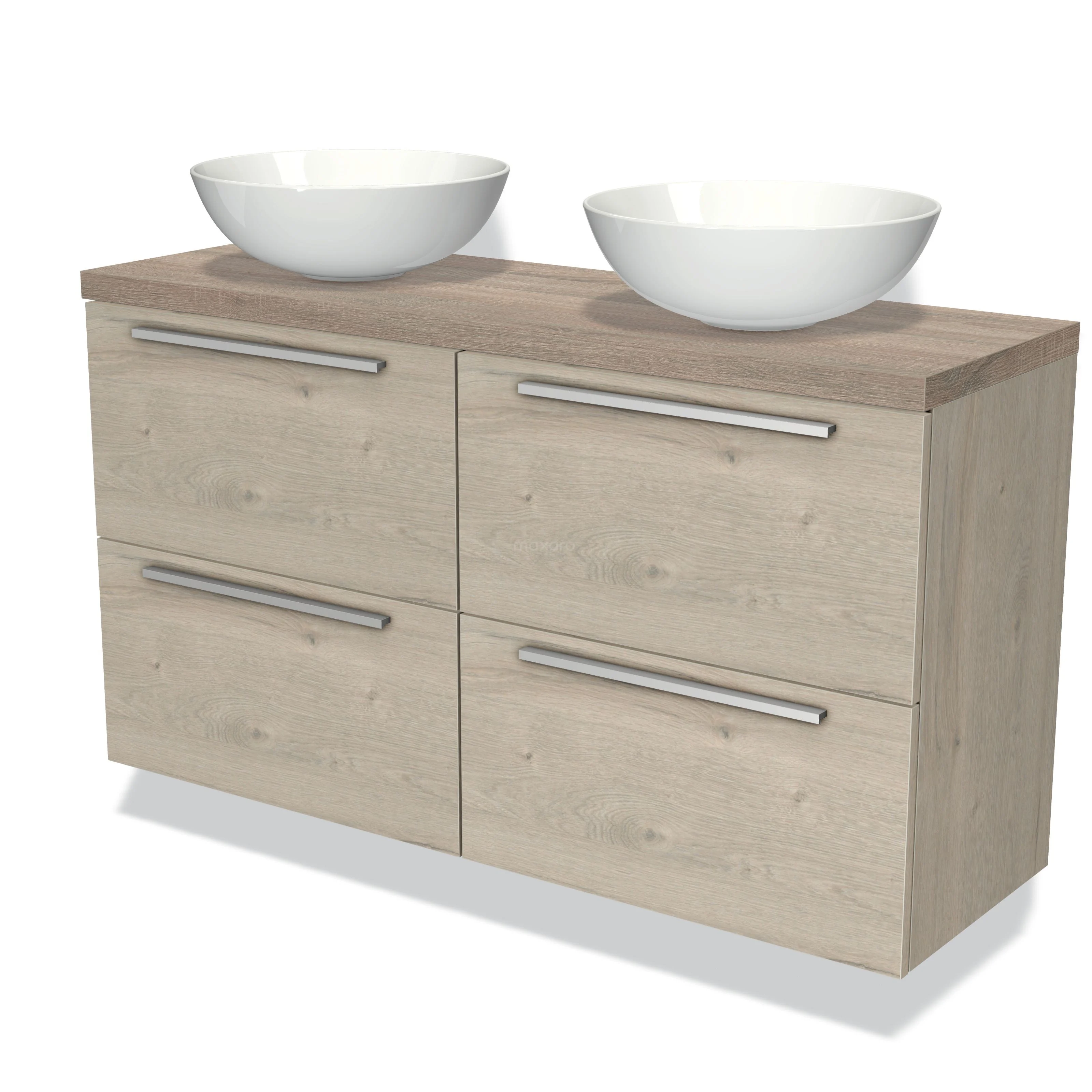 Badmöbel für Waschtischunterschrank mit Konsole 120cm Modulo Plato Slim hellgraue Eiche 4 Schubladen Flache Platte aus Eiche