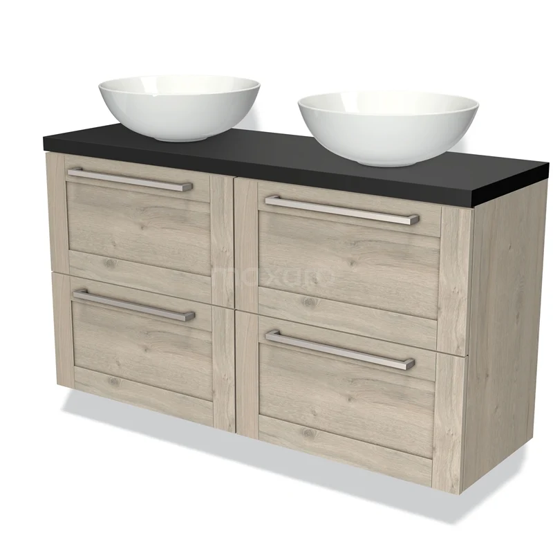 Badmöbel für Waschtischunterschrank mit Konsole 120cm Modulo Plato Slim hellgraue Eiche 4 Schubladen Rahmen Matt Schwarz Platte