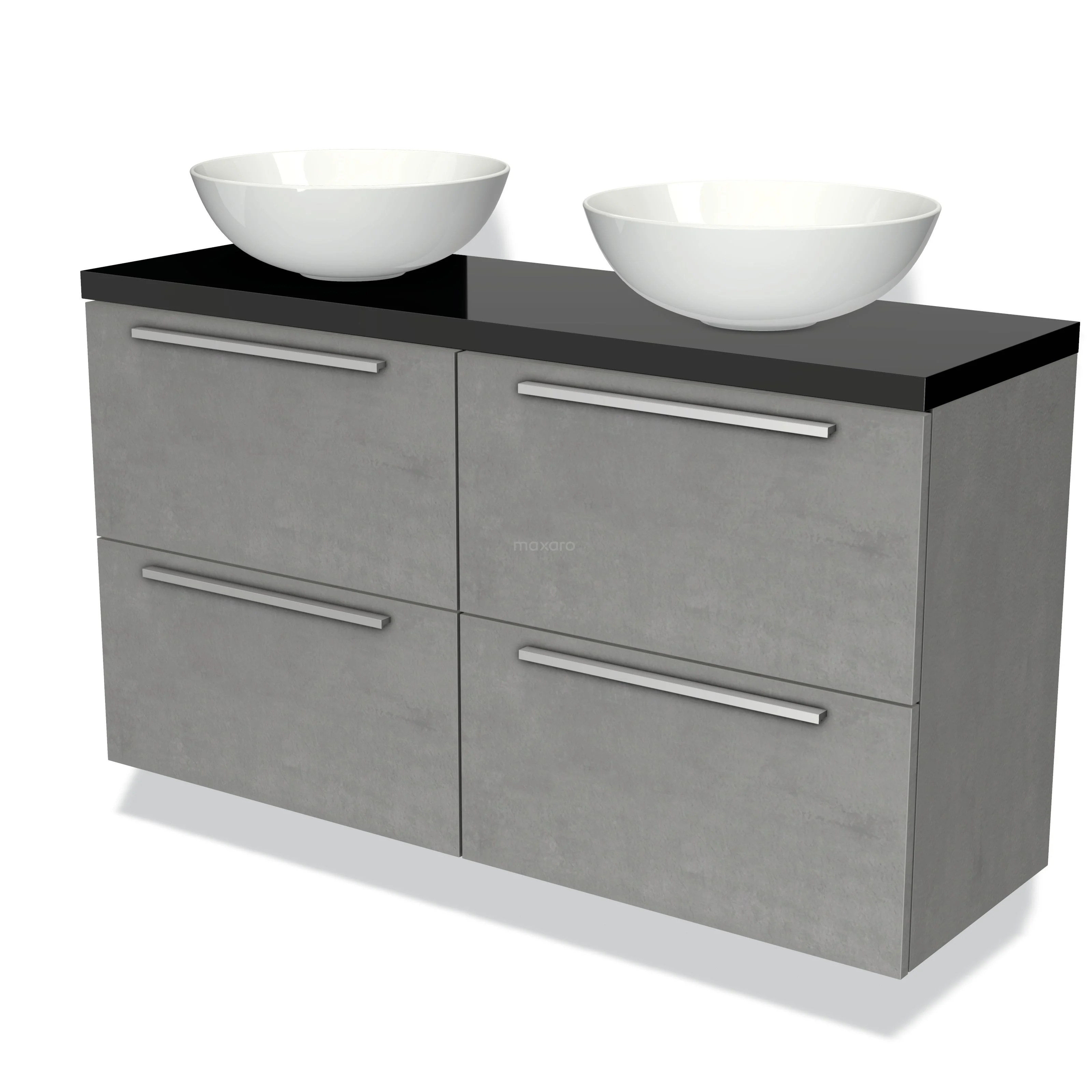 Badmöbel für Waschtischunterschrank mit Konsole 120cm Modulo Plato Slim hellgrauer Beton 4 Schubladen Flach Hochglanz Schwarz Platte